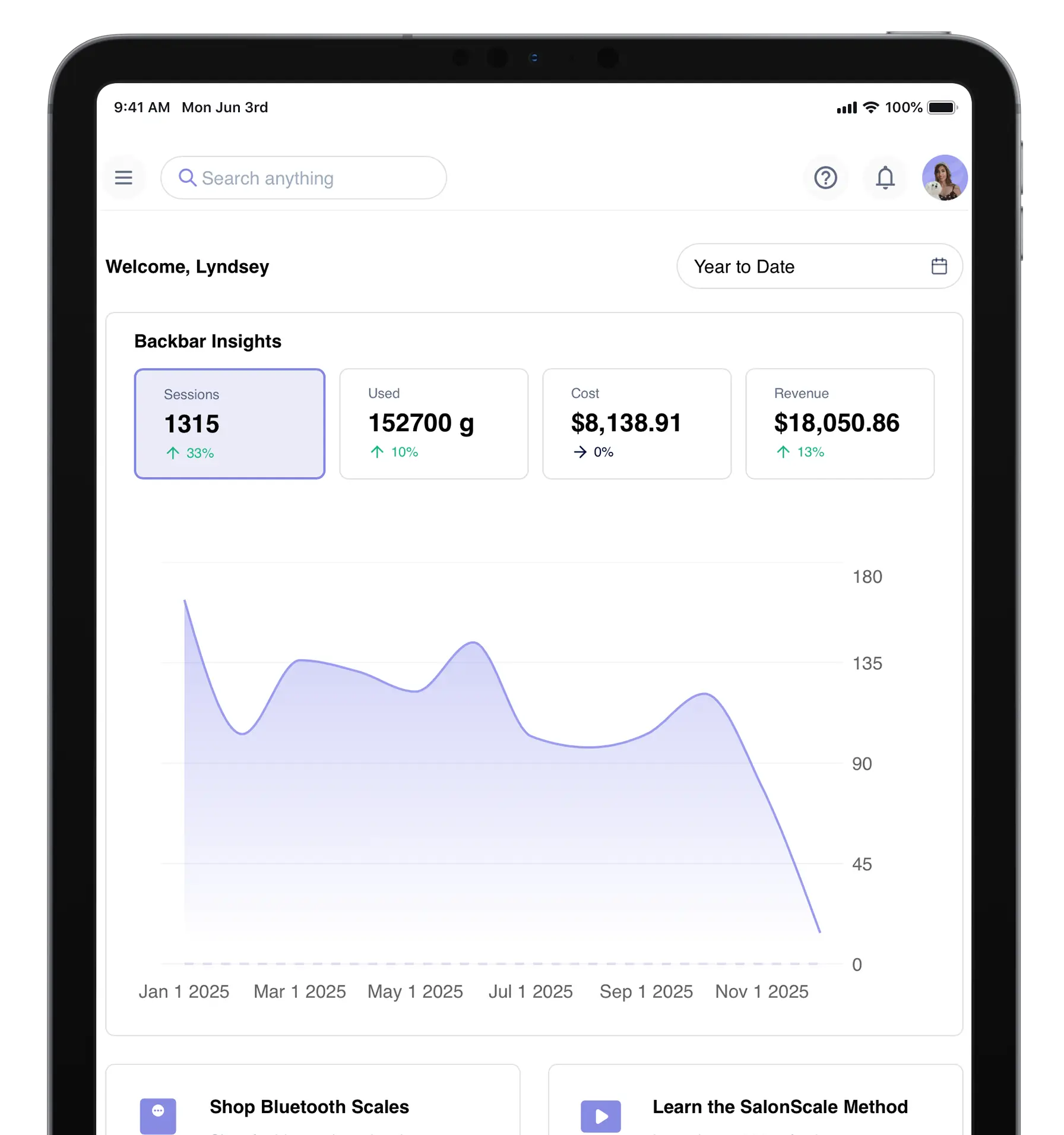 Stop guessing your color usage. SalonScale shows you the true cost behind every formula, instantly with real-time product costs, inventory, ordering and so much more.